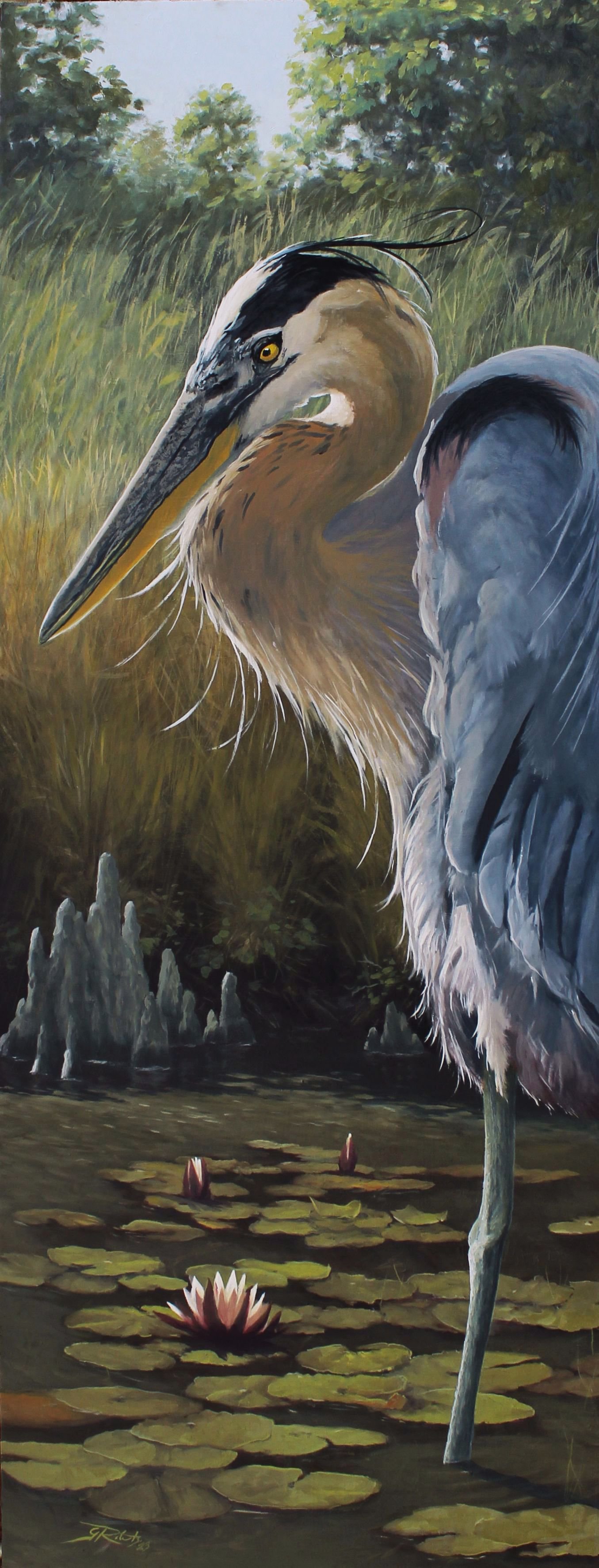 shows up in much of his work. The Currituck Sound and the northern Outer Banks are frequent subjects. Work boats and waterlilies, egrets and herons will often be represented. You will however find the occasional mountain scene possibly with an old truck, barn or stream center stage,